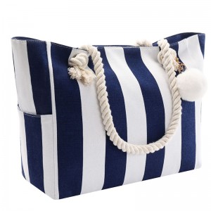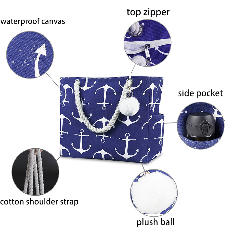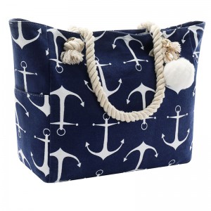 नेभी ब्लू एन्कर क्यानभास बीच ट्राभल टोटको साथ तपाईंको समुद्र तट शैलीलाई उचाल्नुहोस्। टिकाउ क्यानभासबाट बनाइएको, यो ह्यान्डब्यागले आधुनिक र न्यूनतम डिजाइन प्रदर्शन गर्दछ। समुद्र तट घुम्नको लागि उत्तम, यसले तपाईंको व्यक्तिगत शैली अनुरूप धेरै रङ विकल्पहरू प्रदान गर्दछ। स्ट्यान्डआउट विशेषता भनेको ठूलो फ्लफी पोम्पम हो, जसले चंचलता र विशिष्टताको स्पर्श थप्छ।