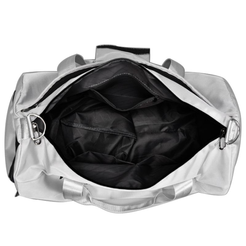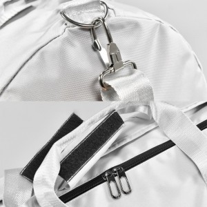 E projektuar për qëndrueshmëri dhe funksionalitet, kjo çantë palestre mund t'i rezistojë ngarkesave të rënda deri në 22 kg. Pjesa e jashtme është bërë nga material i papërshkueshëm nga uji, duke siguruar mbrojtje nga elementët dhe duke siguruar që sendet tuaja të qëndrojnë të thata edhe në kushte lagështie. Pajisjet metalike me cilësi të lartë i shtojnë çantës një prekje shtesë qëndrueshmërie dhe stili.