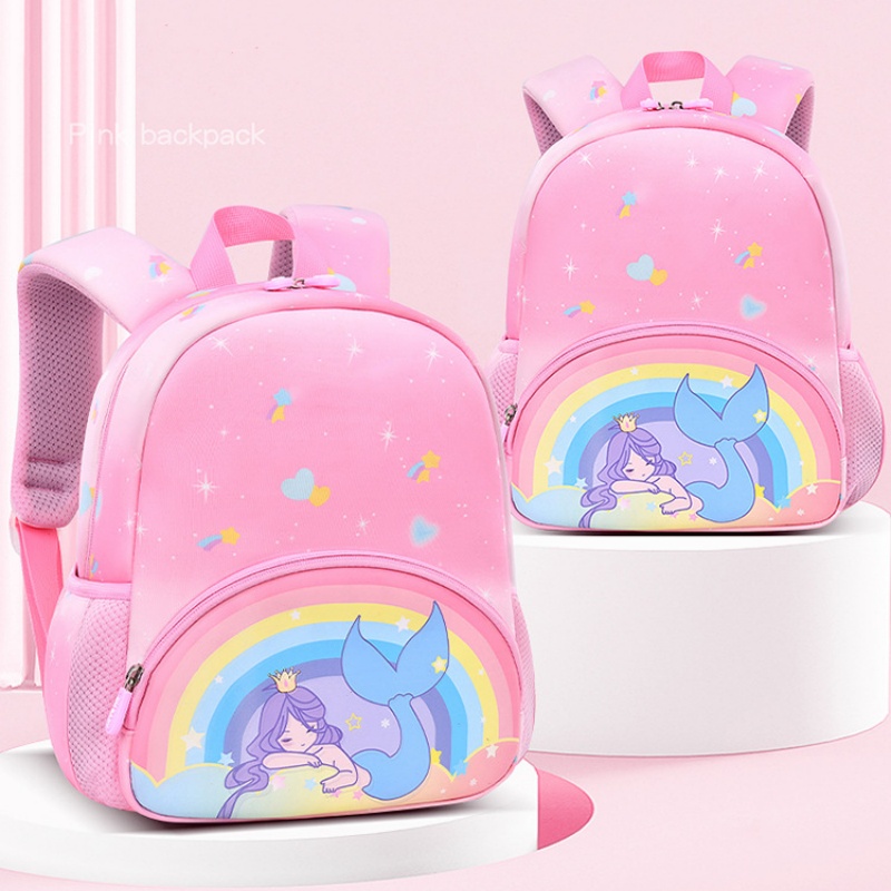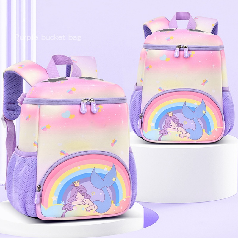 Awọn apo ọmọde yii jẹ apẹrẹ fun awọn ọmọde ọdun 3-8 ọdun. Iwọn apo naa jẹ apo nla: 30 * 24 * 12cm, apo kekere: 28 * 22 * 10cm, eyiti o dara pupọ fun ara kekere ti ọmọ, kii ṣe tobi tabi nla. Polyester ni a lo lori ohun elo, eyiti o ni itọsi wiwọ ti o dara ati idena yiya, ṣugbọn tun fẹẹrẹ fẹẹrẹ, iwuwo gbogbogbo ko kọja 1000 giramu, dinku iwuwo lori ọmọ naa.