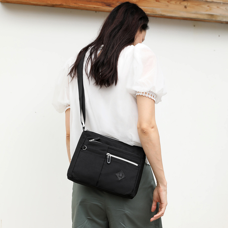 Introducing the latest in urban sophistication: the Summer 2023 Chic Commuter Crossbody Bag. Crafted from premium nylon material, this medium-sized satchel embodies both style and practicality. Its sleek embossed design adds a touch of elegance, making it a perfect accessory for the fashion-conscious professional on-the-go.