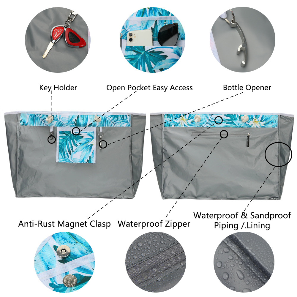With its fashionable printed design, this bag adds a touch of style to your beach outings and daily adventures. The bag's functional design includes side pockets to hold water bottles, providing easy access to hydration on the go. We offer customization options and OEM/ODM services to meet your specific requirements and preferences.