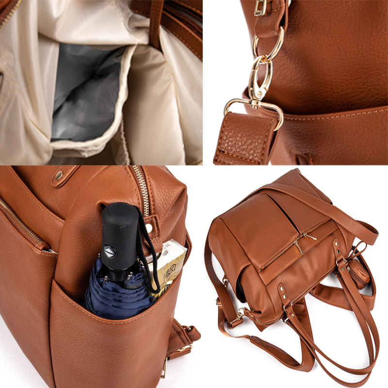 Embrace European and American Vintage Style with our Maternity Diaper Bag, boasting a timeless Deep Brown color. Stay organized with its internal zip pockets, phone pouch, and ID card slot. It's not just practical but also a fashion statement, allowing moms to look stylish while taking care of their little ones.