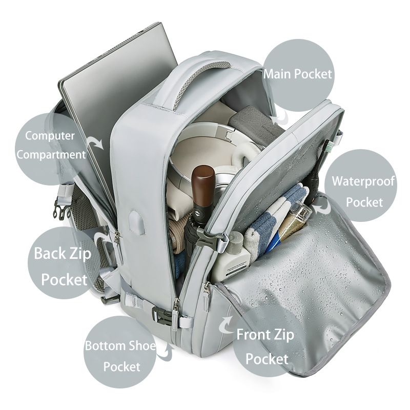 Versatile and Durable: This backpack is designed to meet the demands of modern life. It features a versatile design suitable for various occasions, including business trips, office use, and short getaways. The wet/dry separation compartment keeps your items organized and protected. The independent shoe compartment is perfect for storing your shoes or gym essentials. The backpack also includes a USB charging port, allowing you to conveniently charge your devices on the go. Crafted with high-quality materials, it offers durability and water resistance, ensuring your belongings stay safe and secure.