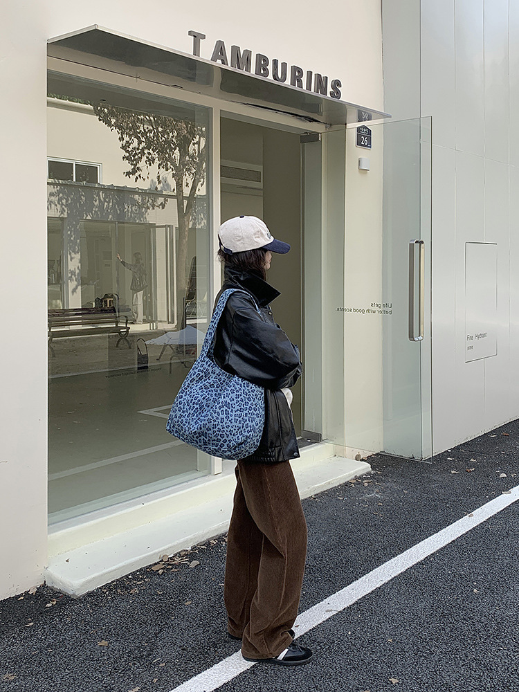 Sac TRUST-U en toile bleue à imprimé léopard, style coréen, tendance et polyvalent, sac bandoulière, sac porté épaule, grande capacité, cabas idéal pour les trajets quotidiens