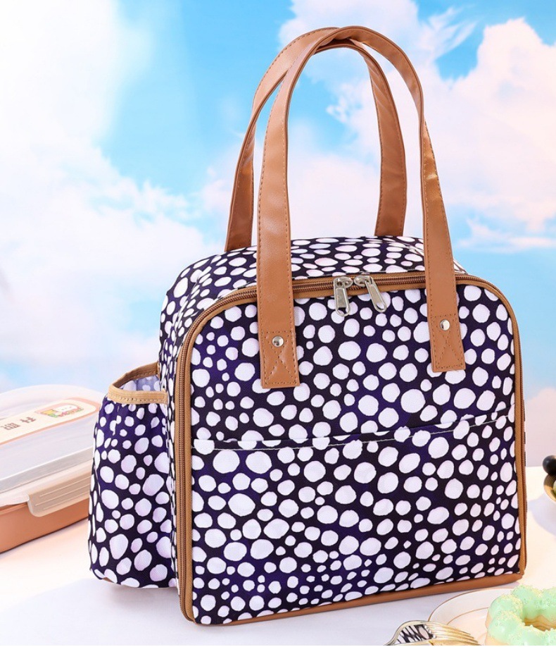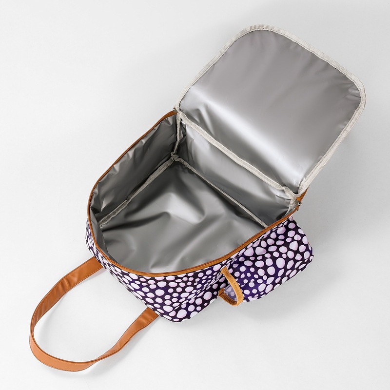 600D polyester Oxford akwa dị ka akwa dị n'èzí, na-eguzogide ọgwụ na mgbochi mmiri, dabara maka ojiji kwa ụbọchị; Ihe EVA na owu pearl dị n'etiti na-enye nchebe dị mma maka akpa ahụ, na-abawanye arụmọrụ mkpuchi ọkụ, ebe ọ na-ejigide ìhè nke ahụ nsonye; Ihe PEVA dị n'ime oyi akwa dị n'ime ya bụ enyi na enyi na gburugburu ebe obibi ma dị mfe ihicha, na-ahụ maka ịdị ọcha na nchekwa nri.