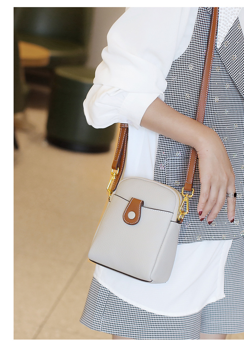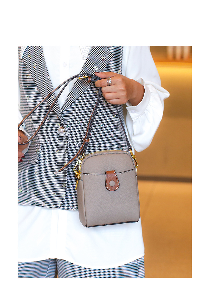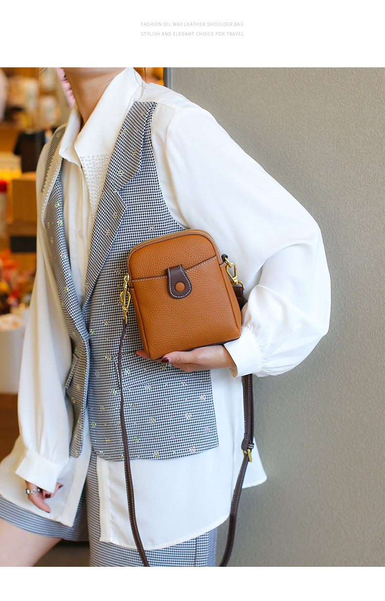 Tas kulit wanita iki digawe saka kulit sapi, alus lan awet, nyorot kualitas tekstur lan keanggunan. Desain awak inklusi prasaja lan loman, lan rincian nuduhake pakaryan, sing dadi pilihan sing cocog kanggo urip lan kerja saben dinane.