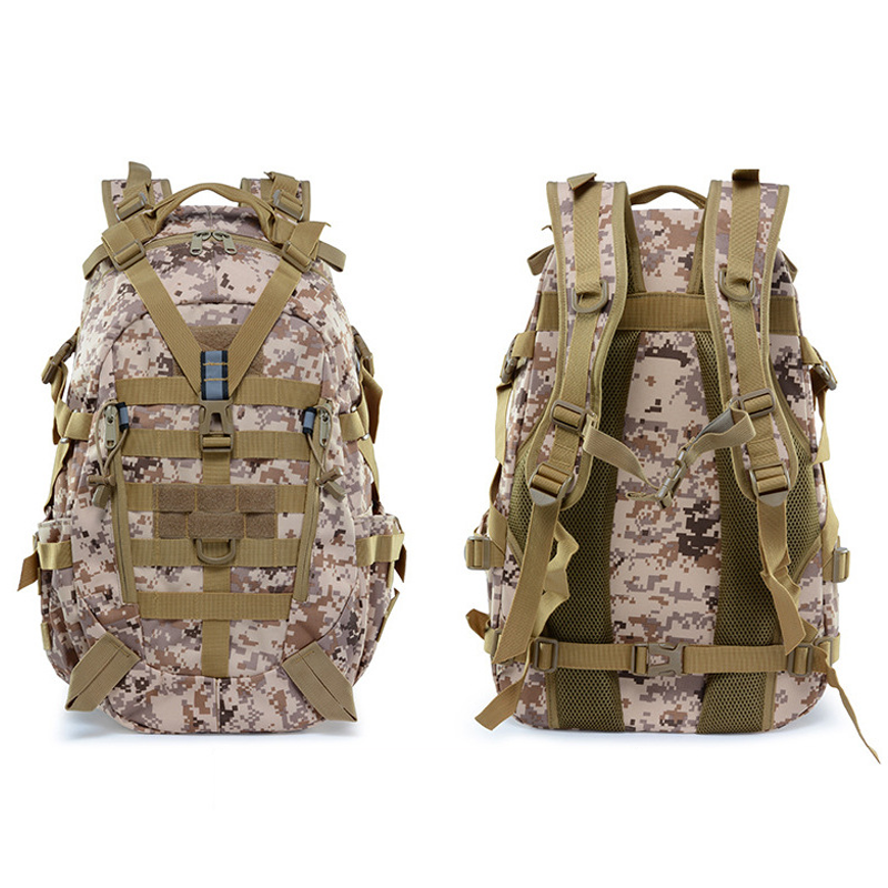 ಪಾದಯಾತ್ರೆ, ಕ್ಯಾಂಪಿಂಗ್ ಮತ್ತು ಟ್ರೆಕ್ಕಿಂಗ್ ಪ್ರಯಾಣಗಳನ್ನು ಕೈಗೊಳ್ಳುವ ಸಾಹಸಮಯ ಆತ್ಮಗಳಿಗೆ ಪರಿಪೂರ್ಣ ಸಂಗಾತಿಯಾದ ನಮ್ಮ ಪುರುಷರ ಕ್ಯಾಮಫ್ಲೇಜ್ ಹೊರಾಂಗಣ ಟ್ಯಾಕ್ಟಿಕಲ್ ಬ್ಯಾಕ್ಪ್ಯಾಕ್ ಅನ್ನು ಪರಿಚಯಿಸುತ್ತಿದ್ದೇವೆ. ಈ ಬೆನ್ನುಹೊರೆಯು ಮಿಲಿಟರಿ-ಪ್ರೇರಿತ ವಿನ್ಯಾಸವನ್ನು ಹೊಂದಿದೆ, ಇದು ಅರಣ್ಯ ಉತ್ಸಾಹಿಗಳಿಗೆ ಸೂಕ್ತವಾಗಿದೆ. 25 ಲೀಟರ್ಗಳ ಉದಾರ ಸಾಮರ್ಥ್ಯದೊಂದಿಗೆ, ಇದು ನಿಮ್ಮ ಎಲ್ಲಾ ಅಗತ್ಯ ವಸ್ತುಗಳಿಗೆ ಸಾಕಷ್ಟು ಸ್ಥಳಾವಕಾಶವನ್ನು ನೀಡುತ್ತದೆ ಮತ್ತು ಕೇವಲ 1 ಕಿಲೋಗ್ರಾಂನಲ್ಲಿ ಗಮನಾರ್ಹವಾಗಿ ಹಗುರವಾಗಿರುತ್ತದೆ.