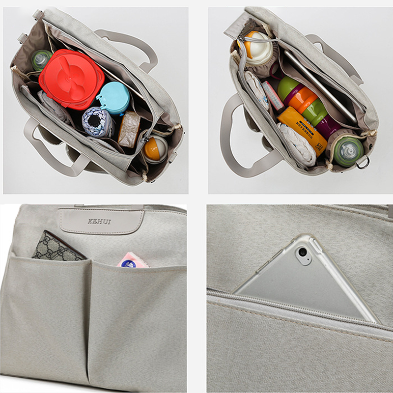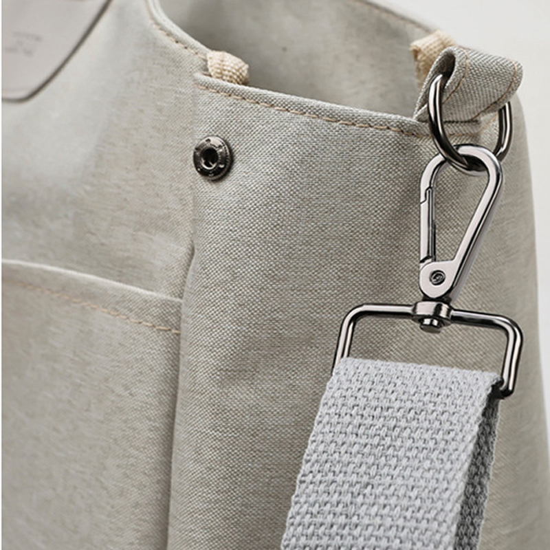 It can be effortlessly worn as a single shoulder bag or a crossbody tote, providing extra-large capacity and intelligently organized compartments. The side compartment serves as a convenient thermal pocket, keeping baby bottles warm or cold as needed. The interior boasts plenty of layered space, allowing you to keep diapers, wipes, clothes, and other essentials neatly arranged while you enjoy quality time with your little one.