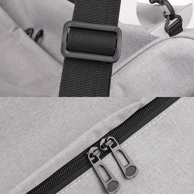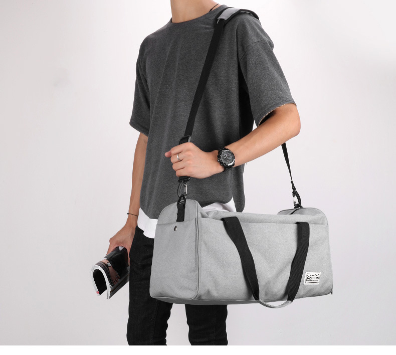 The bag features a dedicated shoe compartment with ventilation holes, allowing your shoes to breathe and preventing odors. The reinforced shoulder straps ensure comfortable carrying, even when the bag is fully loaded. Crafted with durable Oxford fabric on the exterior and lined with polyester on the interior, this bag offers both style and durability.
