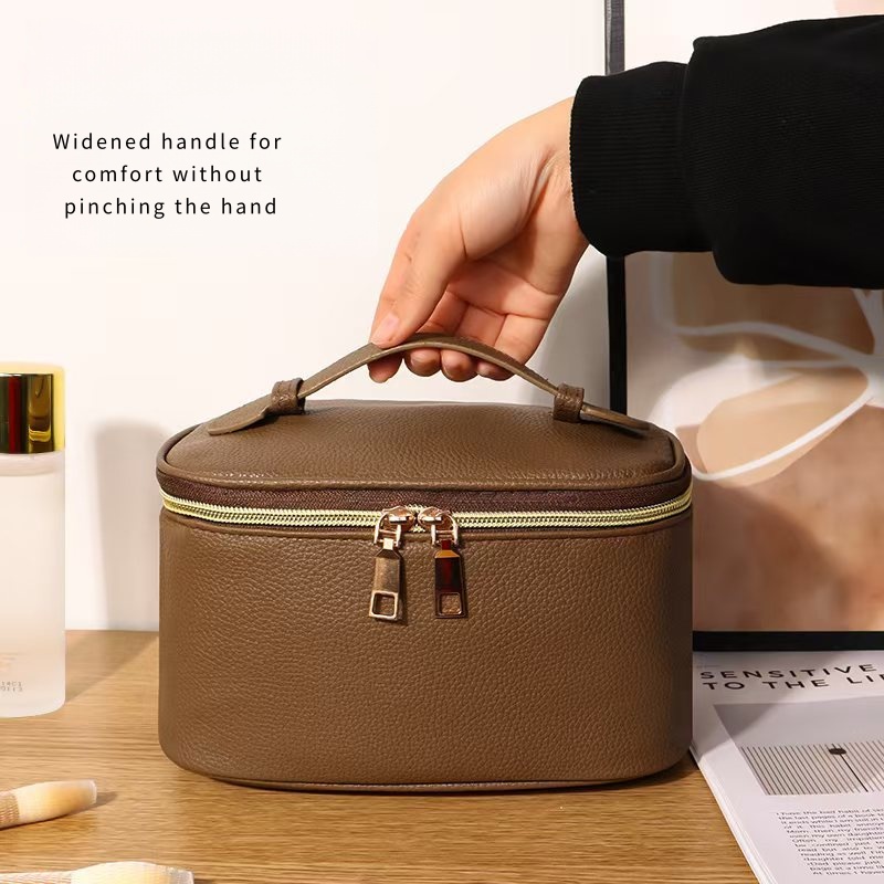 TRUST-U 2025 шинэ PU арьсан зөөврийн хуваасан ариун цэврийн хэрэглэлийн дугуй аялалын гар уут Эмэгтэйчүүдийн гоо сайхны цүнх