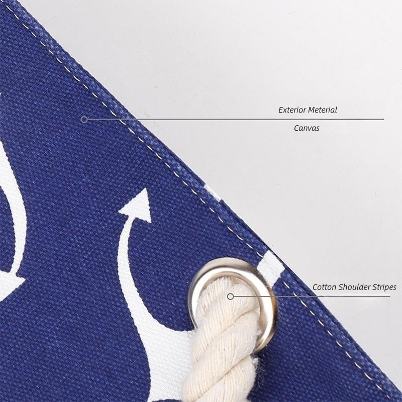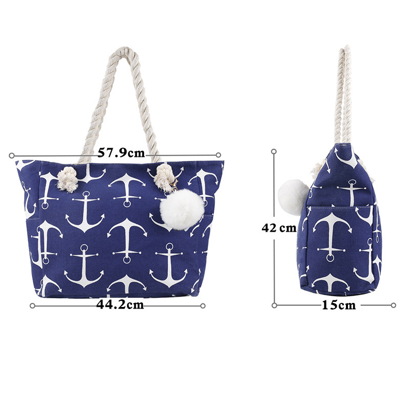 Elevate your beach style with the Navy Blue Anchor Canvas Beach Travel Tote. Crafted from durable canvas, this handbag showcases a modern and minimalist design. Perfect for beach outings, it offers multiple color options to suit your personal style. The standout feature is the large fluffy pompom, adding a touch of playfulness and uniqueness.