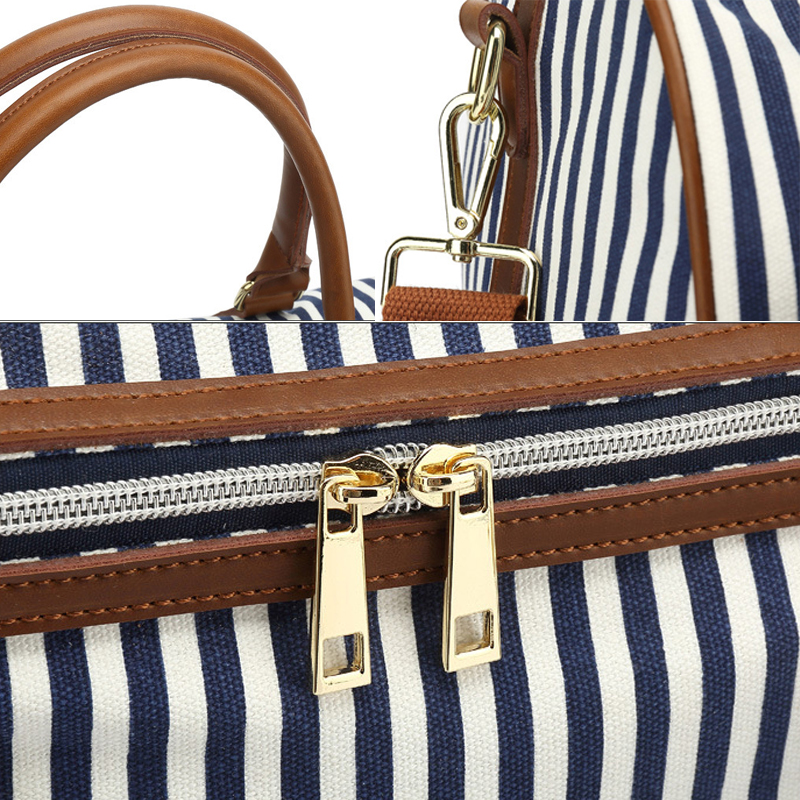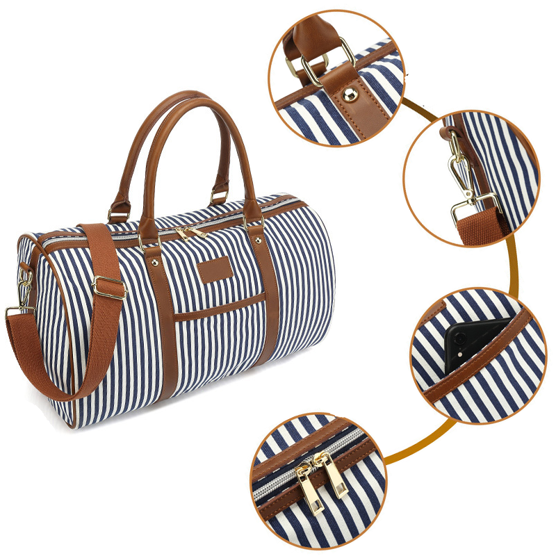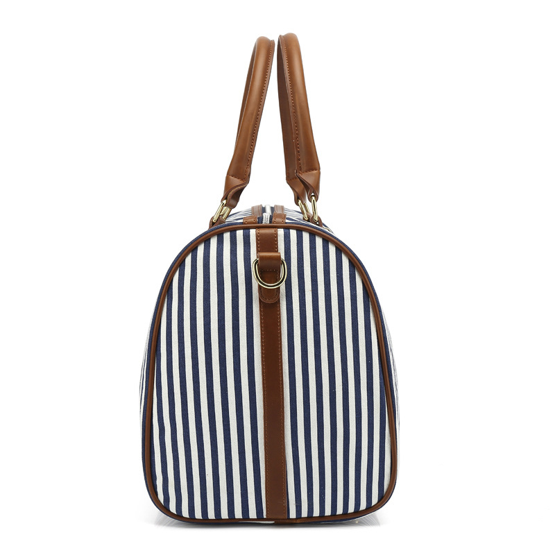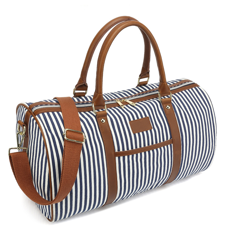 Step into 2023 spring with the Trust-U travel duffle bag, showcasing a trendy Korean-inspired design with fashionable stitching details. The distinctive blue stripe pattern provides a refreshing take on the classic canvas bag. Constructed with a horizontal rectangle shape and complemented by soft-handle gripping, it perfectly marries style and function