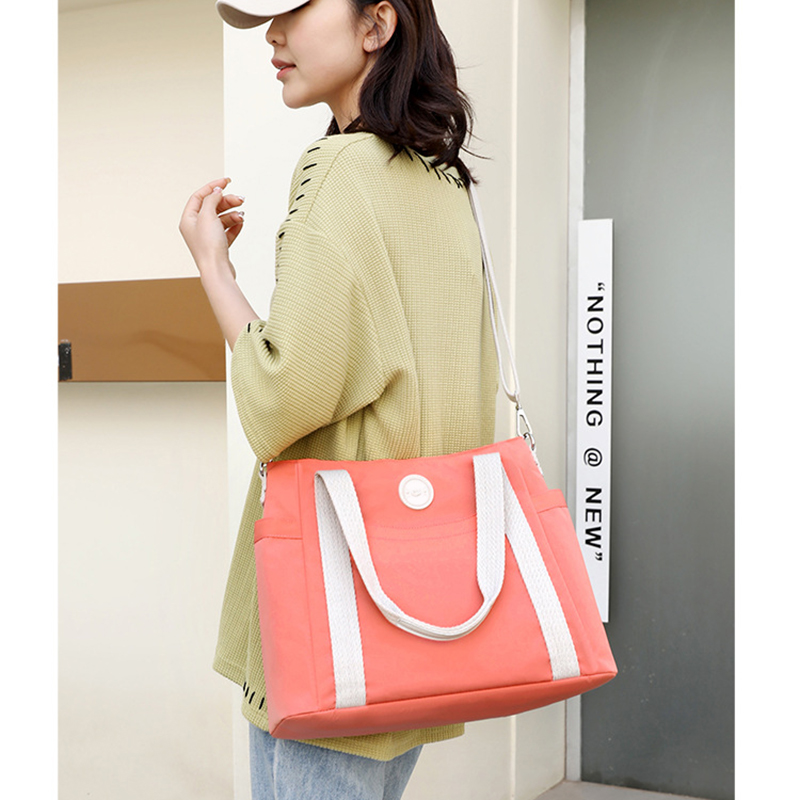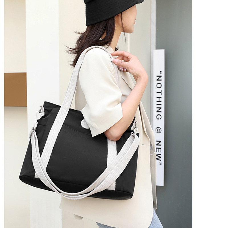 Dive into the urban jungle with the Trust-U Nylon Underarm Bag from our Summer 2023 collection. This large, horizontally structured tote combines functional design with modern aesthetics, featuring a contrasting color scheme that stands out in any crowd. The bag is crafted with durable nylon and lined with polyester, ensuring your items stay safe and organized with an array of pockets, including a zippered compartment, phone pouch, and a dedicated laptop sleeve.