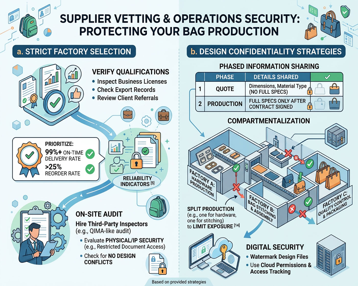 Compartmentalization: Split production across multiple factories (e.g., one for hardware, another for stitching) to limit exposure.