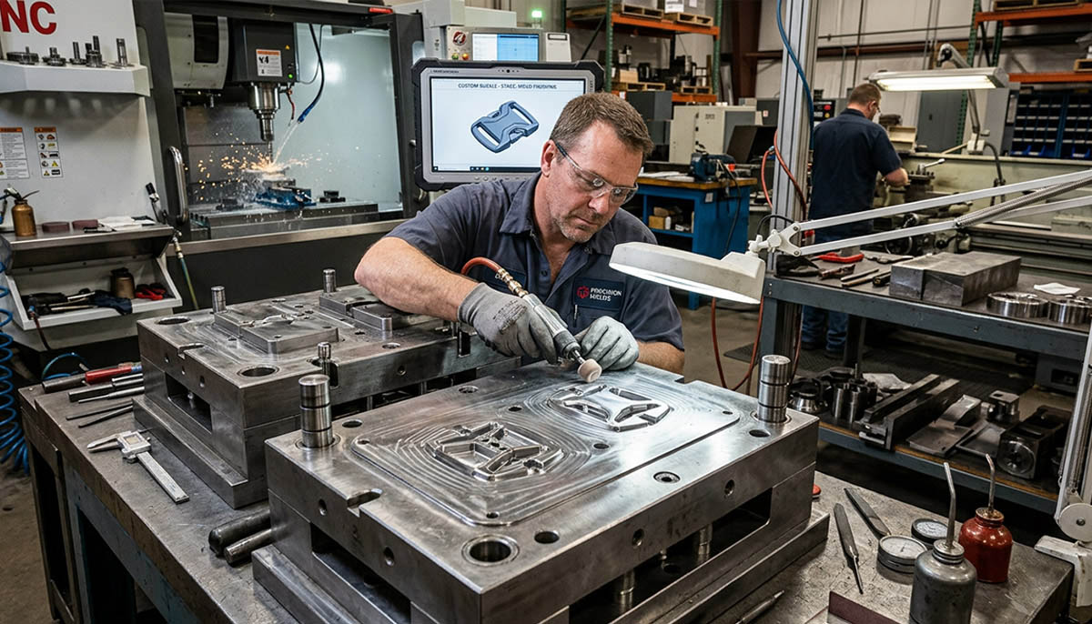 Custom molds are essential for unique components; the process starts with a 3D prototype, moves to steel tooling, and takes 4-12 weeks. Costs vary with intricacy—simple buckles start at $2,000, while complex multi-material parts hit $20,000. Innovations like RFID/NFC chip integration or metal-plastic hybrids require niche expertise and specialized lines, narrowing supplier choices. Digital twin simulation reduces errors but is rare; seek suppliers with this to save time.