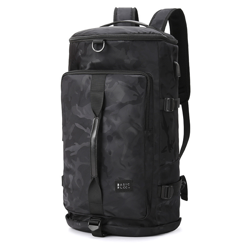 The size of this sports travel backpack is 16 inches, can contain a 16-inch computer, and is breathable, waterproof, wear-resistant, and anti-theft. Can be carried on both shoulders, crossbody and handheld. It has two curved shoulder straps and opens with a zipper.