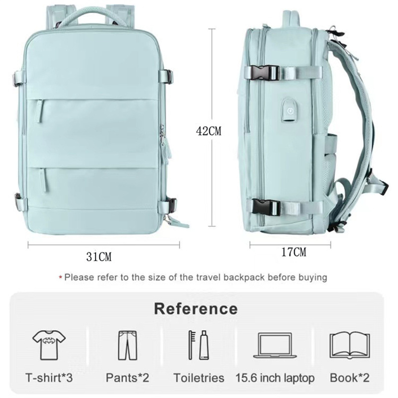 This backpack leans towards a medium size with a capacity of 35 liters. It is made of Oxford cloth material and is fully waterproof. It can accommodate a 15.6-inch laptop, making it suitable for carry-on during flights.