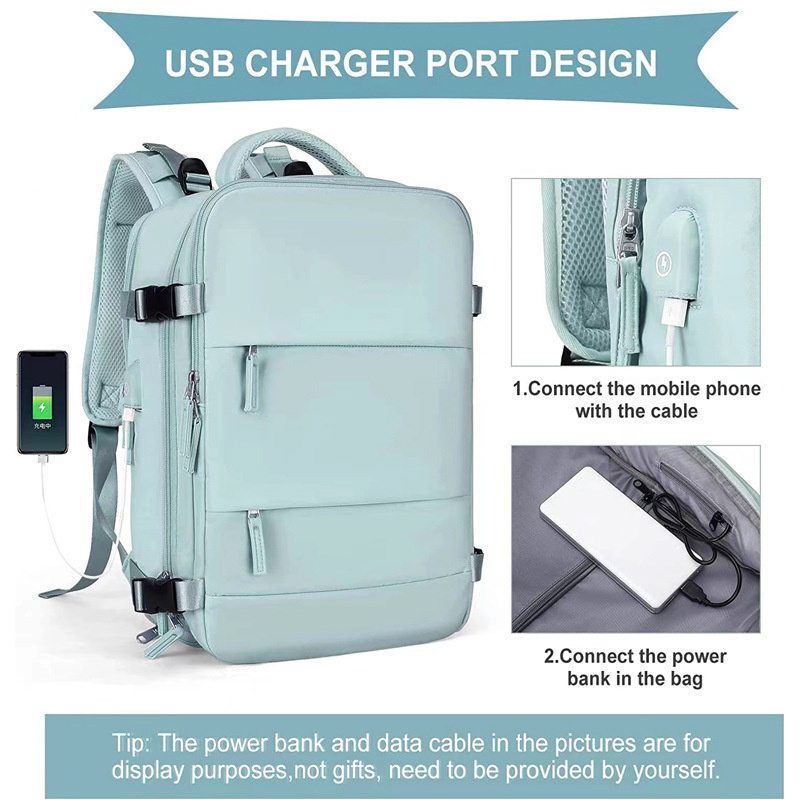Among backpacks of similar size, this model stands out for its large carrying capacity of 35 liters. It features a dedicated shoe compartment, a wet and dry Compartments, and thoughtful details such as an external charging port. Simply connect your power bank inside the backpack and start charging on the go.