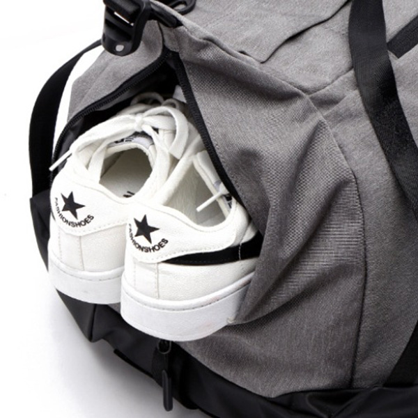Ta potovalna torba za telovadbo ima prostorno 55-litrsko prostornino in dva ukrivljena naramna trakova za vsestranske možnosti nošenja, vključno z nošenjem v roki, na enem ramenu in na obeh ramenih. Zasnovana je z odlično zračnostjo in vodoodpornostjo. To torbo lahko nosite s seboj na potovanja.