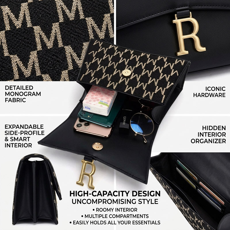 Kulit PU PremiumBahan Didamel tina kulit PU kualitas luhur, tas ieu nawiskeun sentuhan anu lemes sareng nyaman bari mastikeun daya tahan pikeun dianggo sadidinten. Bahanna henteu ngan ukur gampang dibersihkeun sareng dirawat tapi ogé nampilkeun tékstur anu canggih anu ngaluarkeun rasa méwah, cocog sareng estetika tren fashion kelas atas.
