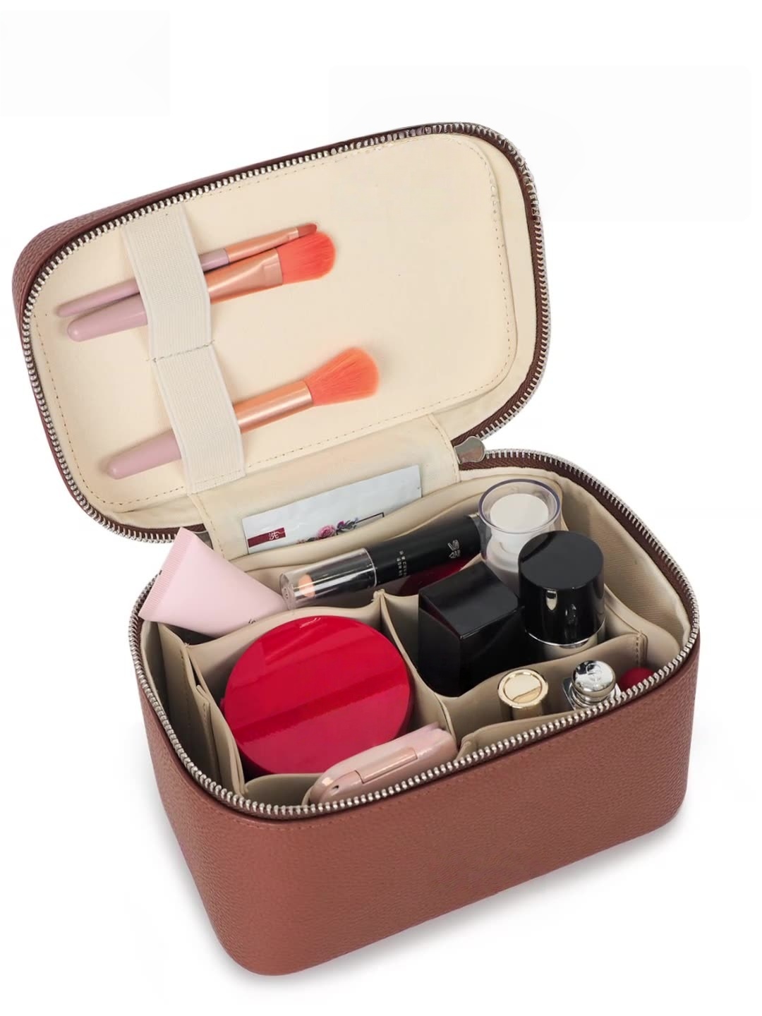 TRUST-U förvaringsväska, handhållen fyrkantig sminkväska i PU-läder, bärbar reseförvaring, stor kapacitet med handtag, delad sminkväska