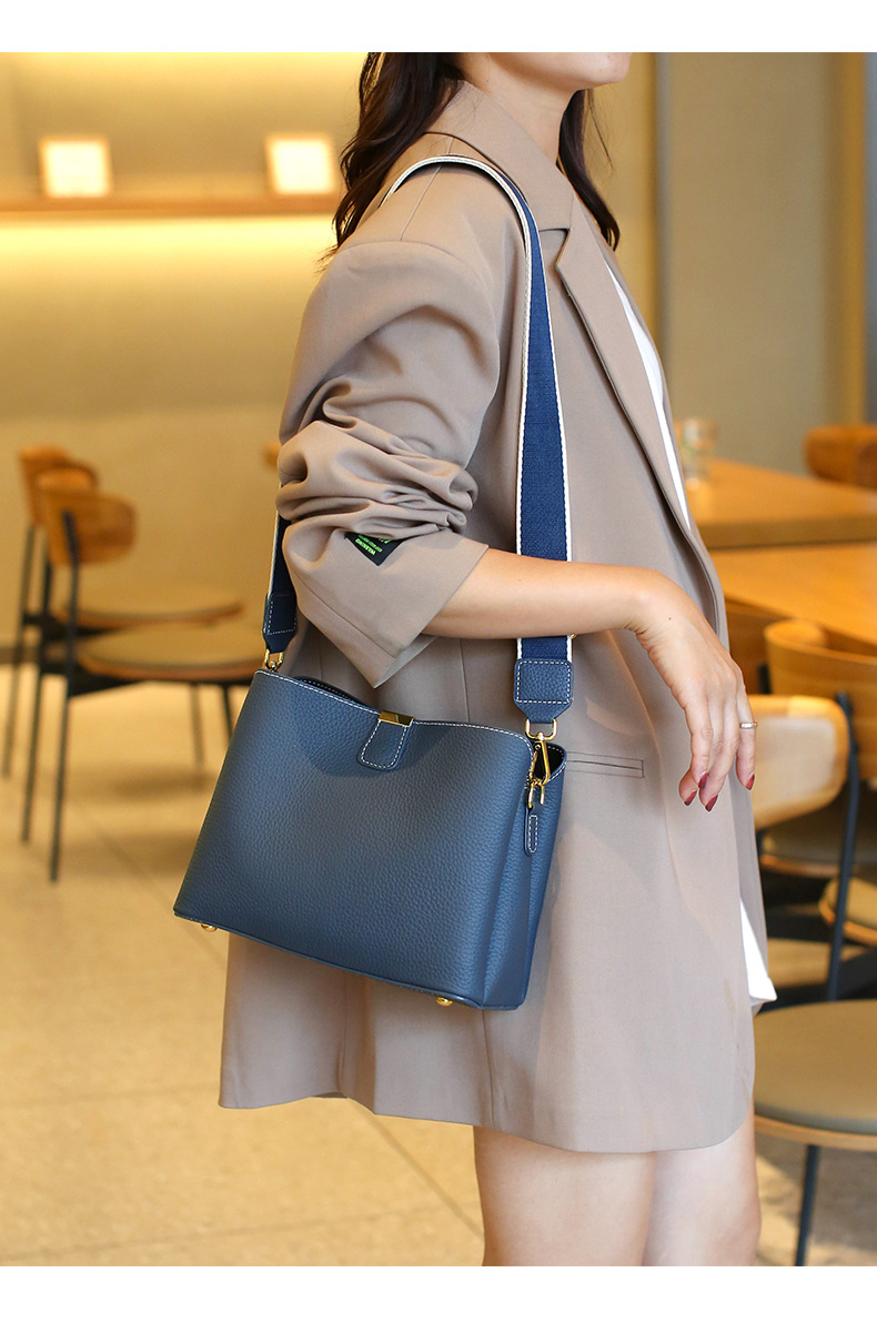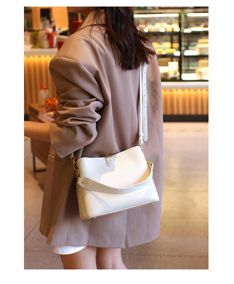Denna damväska i läder är tillverkad av kohud, mjuk och slitstark, vilket framhäver den höga kvaliteten på textur och elegans. Den inbyggda designen är enkel och generös, och detaljerna visar hantverket, vilket är det perfekta valet för både vardag och arbete.