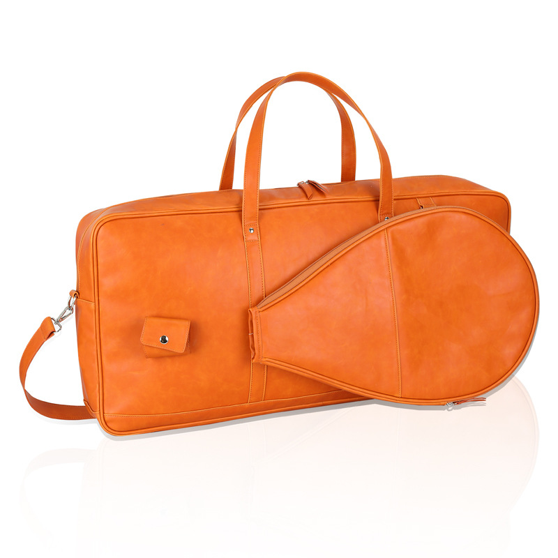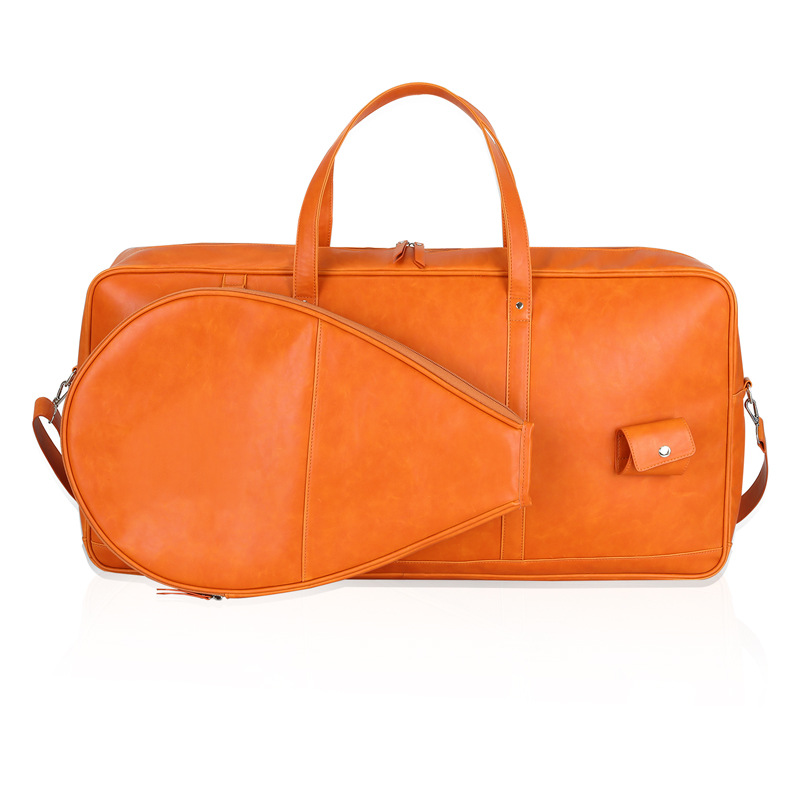 Tunazindua mkoba wetu wa michezo na usafiri wa hali ya juu, ulioundwa kwa ustadi kutoka kwa ngozi ya PU ya ubora wa juu. Rangi yake nyororo ya chungwa inaangazia hali ya juu, huku sehemu ya kipekee ya raketi ikionyesha muundo wake unaozingatia michezo. Pamoja na kipengele chake cha utenganishaji cha mvua na kavu, begi hili ni maridadi kwani linafaa kwa matukio yako na juhudi za riadha.