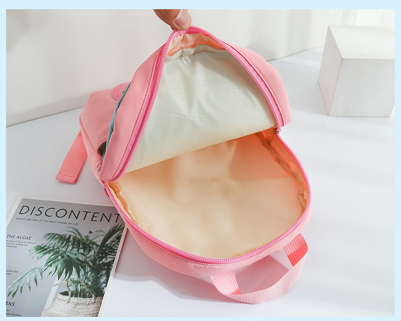 Mfuko huu wa watoto umeundwa kwa watoto wenye umri wa miaka 3-8. Ukubwa wa mfuko ni 26 * 22 * 6cm, ambayo inafaa sana kwa mwili mdogo wa mtoto, si kubwa sana wala si kubwa. Nylon hutumiwa kwenye nyenzo, ambayo ina upole mzuri, lakini pia ni nyepesi sana, uzito wa jumla hauzidi gramu 300, kupunguza mzigo kwa mtoto.