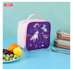 The size of the lunch bag is 21x7x24 cm, and the capacity is moderate, suitable for holding the food needed for a child’s lunch. Its portable design is also very user-friendly, with a hand-held handle at the top, easy for children to carry. The overall design is simple and practical, which not only meets the aesthetic needs of children, but also has practical functionality.