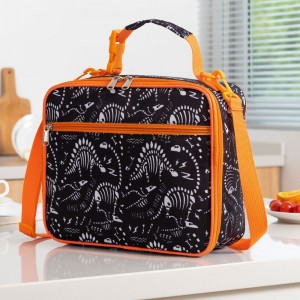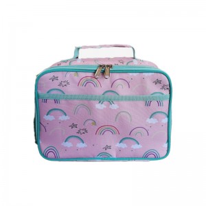 This lunch bag is designed for children, the appearance is lively and cute, full of children’s fun. The front is printed with cartoon patterns, giving people a dreamy feeling, and the ears and features are designed to be simple and cute, attracting the eyes of children. The material is made of 600D polyester Oxford cloth +EVA+ pearl cotton +PEVA inner, which ensures the durability, water resistance and heat preservation of the bag.