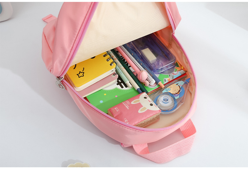 This children’s bag is designed for children aged 3-8 years old. The size of the bag is about 26*21*6cm, which is very suitable for the small body of the child, neither too large nor bulky. Nylon is used on the material, which has good softness, but also very lightweight, the overall weight does not exceed 300 grams, reducing the burden on the child.