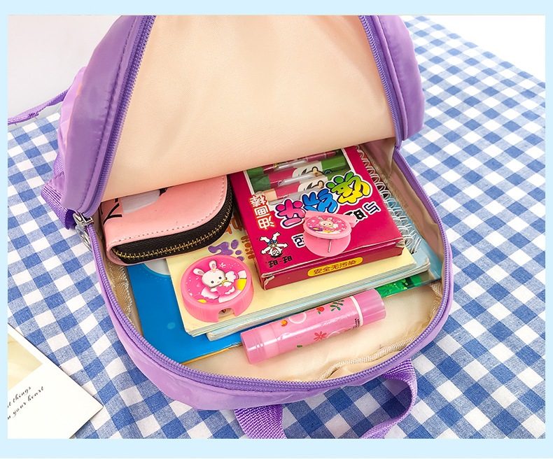 This children’s bag is designed for children aged 3-8 years old. The size of the bag is about 26*22*10cm, which is very suitable for the small body of the child, neither too large nor bulky. Nylon is used on the material, which has good softness, but also very lightweight, the overall weight does not exceed 1000 grams, reducing the burden on the child.