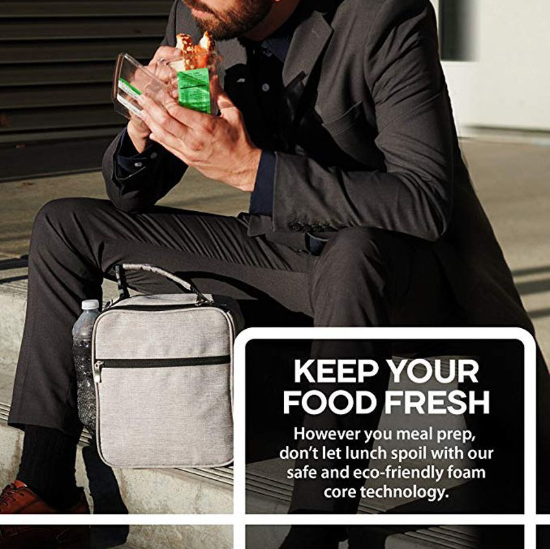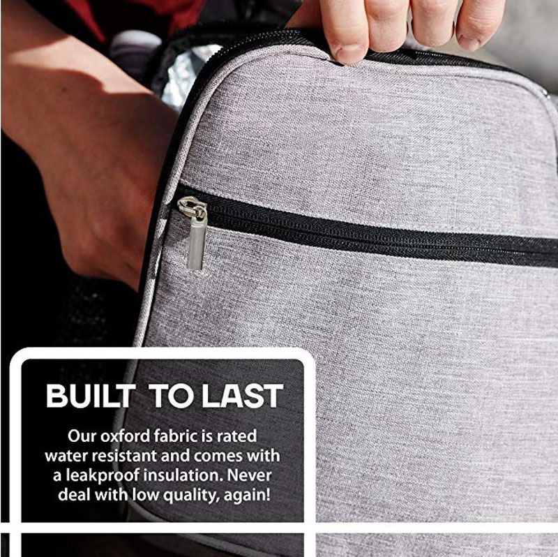 600D polyester Oxford cloth as the outer fabric, wear-resistant and waterproof, suitable for daily use; The EVA material and pearl cotton in the middle provide good cushioning protection for the bag, increasing the thermal insulation performance, while maintaining the lightness of the inclusion body; The PEVA material in the inner layer is environmentally friendly and easy to clean, ensuring food hygiene and safety.
