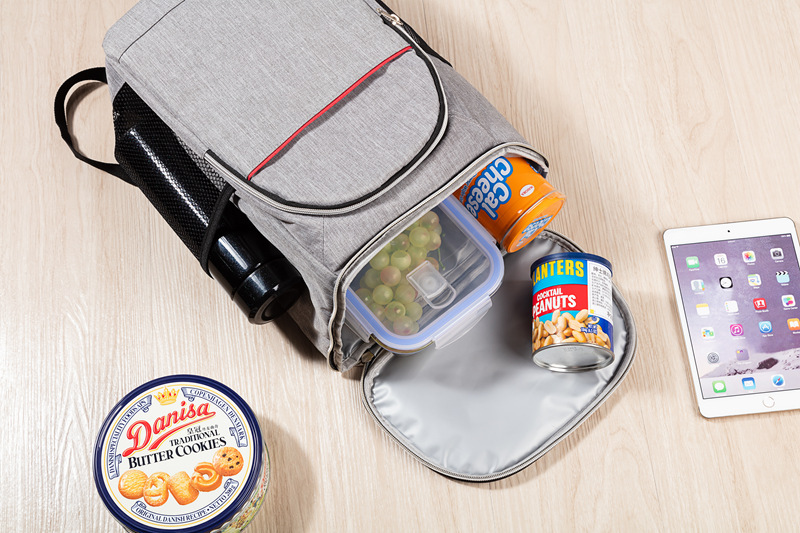 300D Polyester Oxford cloth as the outer fabric, wear-resistant and waterproof, suitable for daily use; The EVA material and pearl cotton in the middle provide good cushioning protection for the bag, increasing the thermal insulation performance, while maintaining the lightness of the inclusion body; The PEVA material in the inner layer is environmentally friendly and easy to clean, ensuring food hygiene and safety.