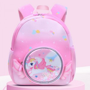 This children’s bag is designed for children aged 3-8 years old. The size of the bag is about 26*22*6cm , which is very suitable for the small body of the child, neither too large nor bulky. PU is used on the material, which has good wear resistance and tear resistance, but also very lightweight, the overall weight does not exceed 1000 grams, reducing the burden on the child.