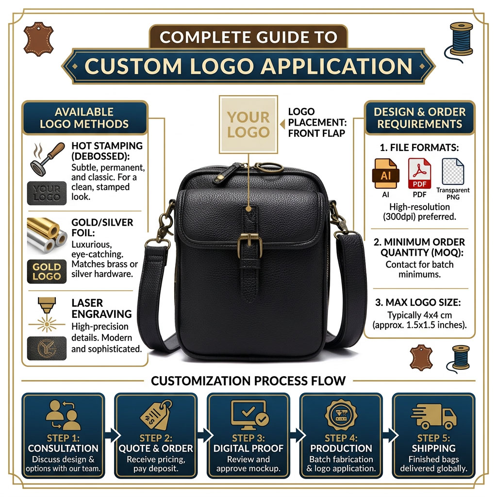 We firmly believe that personalization should be accessible—neither prohibitively expensive nor burdened by cumbersome processes. Leveraging our extensive ready-to-ship inventory, we proudly introduce our “Light Customization Service.” This service allows you to effortlessly customize our Trust U messenger bags to perfectly align with your specific brand requirements, while liberating you from the high “Minimum Order Quantity” (MOQ) thresholds typically associated with traditional mass production models.