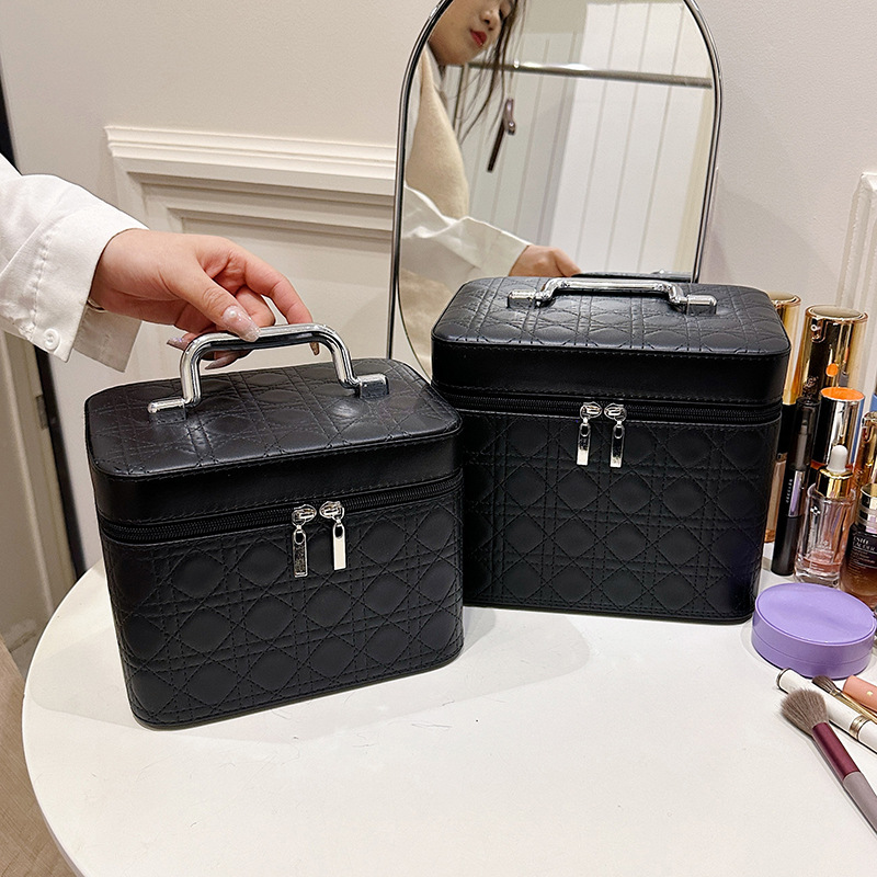 TRUST-U Internet celebrity diamond embroidery line cosmetic bag portable hand-held cosmetic case to enhance the sense of grade solid color