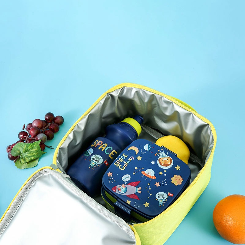 The size of the lunch bag is 21x12x21 cm, and the capacity is moderate, suitable for holding the food needed for a child’s lunch. Its portable design is also very user-friendly, with a hand-held handle at the top, easy for children to carry. The overall design is simple and practical, which not only meets the aesthetic needs of children, but also has practical functionality.