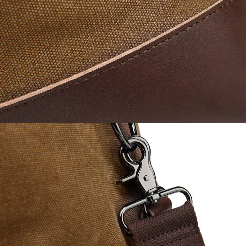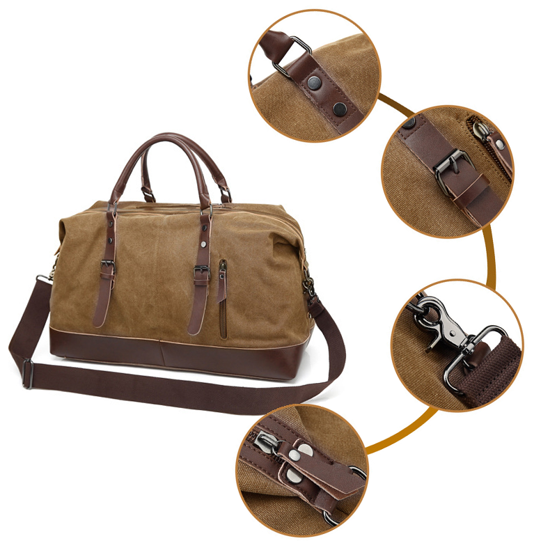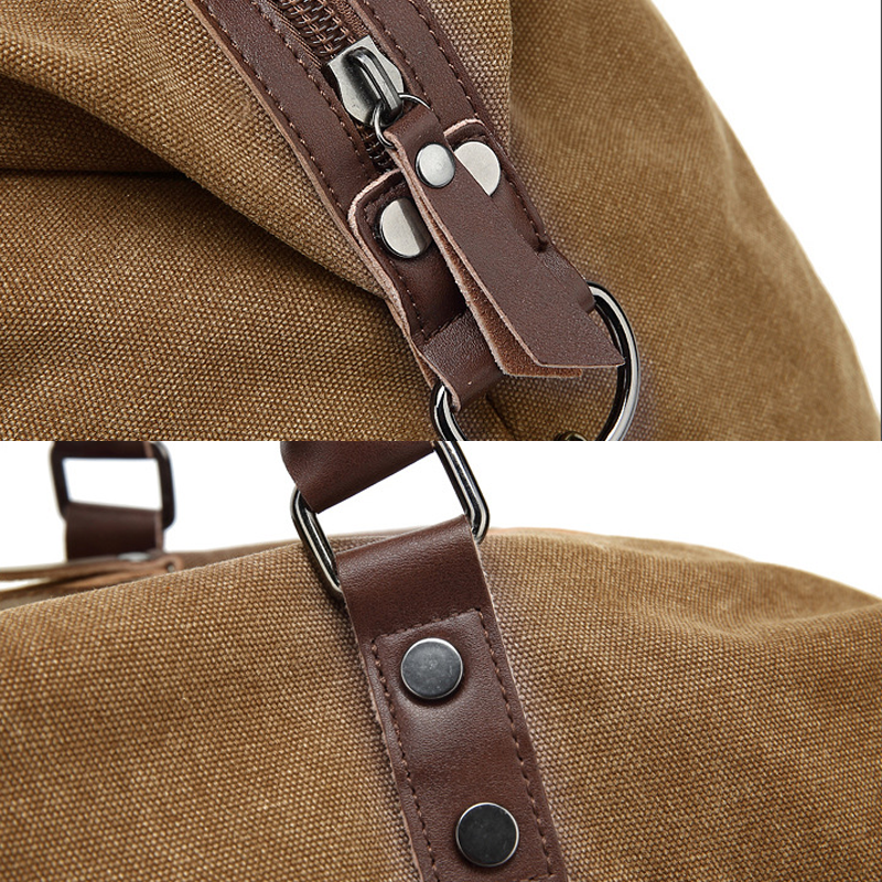 Expertly crafted with a blend of high-quality canvas, genuine leather, and polyester, this duffel bag exudes a casual yet vintage flair. Featuring three separate shoulder straps and soft carry handles, you have multiple carrying options for optimum comfort. The bag opens with a sturdy zipper and boasts a thoughtfully designed interior with separate compartments for your phone, laptop, and important documents, among other essentials. It has a medium to soft hardness level and a wear-resistant function, ensuring that the bag lasts you a long time.