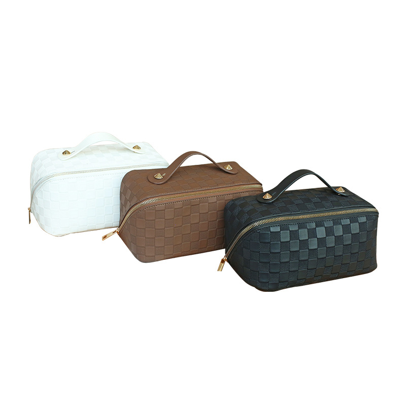 TRUST-U نیا PU بڑی صلاحیت والا مونوگرام واٹر پروف ٹوائلٹری بیگ/میک اپ بیگ