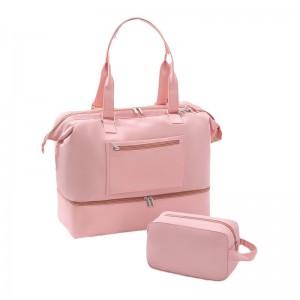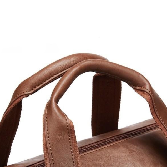This is a waterproof travel duffle bag made of polyurethane leather and polyester. It can be carried by hand or worn on the shoulder. The interior features a zippered tie compartment, versatile pockets, and an iPad compartment. It also has a separate shoe compartment, providing enough space to pack everything needed for a three to five-day business trip, with a capacity of up to 55 liters.