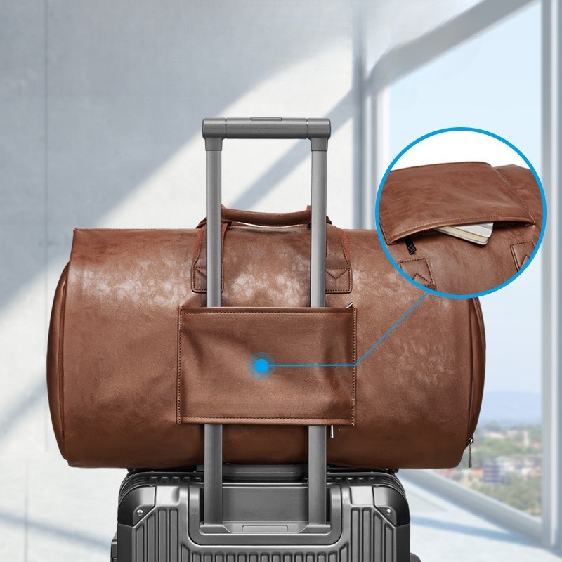 This bag is designed with a vintage style and can be used for travel, business trips, and fitness. The standout feature is the built-in suit storage bag, ensuring that suits stay straight and wrinkle-free.