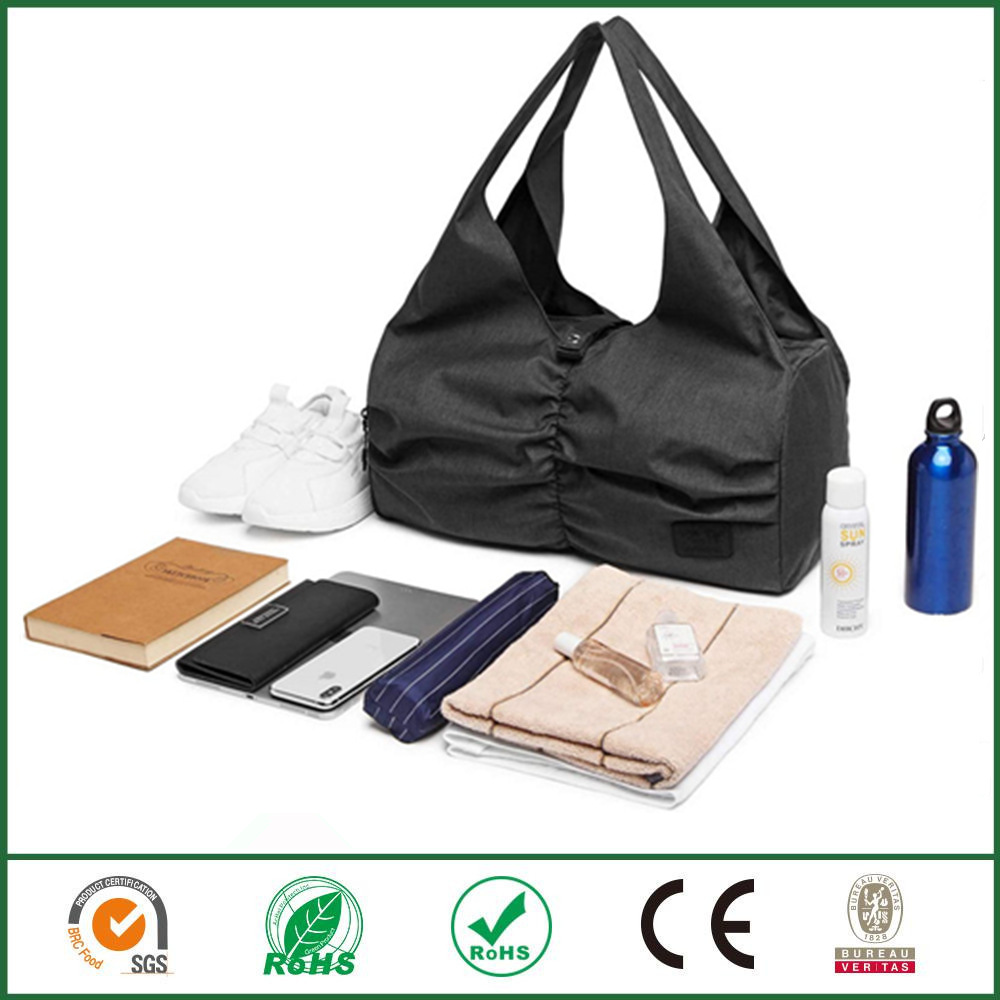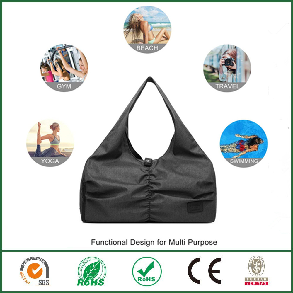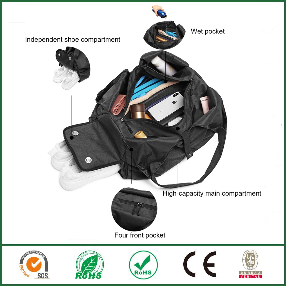 With its spacious design, this gym tote bag can hold many items, including A4-sized magazines placed vertically. It also features a wet/dry separation design, allowing for easy separation of wet and dry items. The independent shoe compartment prevents clothes from coming into direct contact with shoes, eliminating any unpleasant odors. The waterproof design ensures that no water leaks out even when water is poured into the bag.