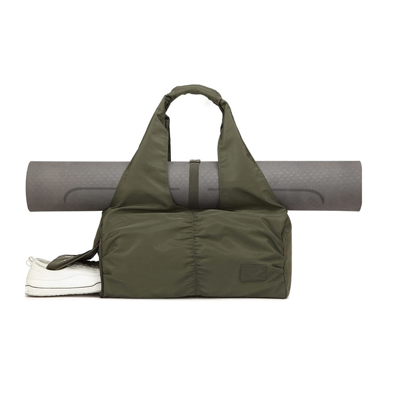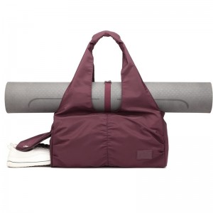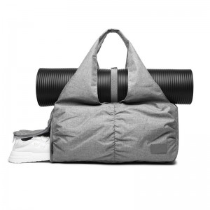 This gym tote bag has a capacity of 25.3 liters and features a unique design to accommodate a yoga mat. It has a separate shoe compartment at the bottom, keeping shoes separate from clothes. The entire backpack is waterproof and includes a scratch-resistant base. It is highly fashionable.