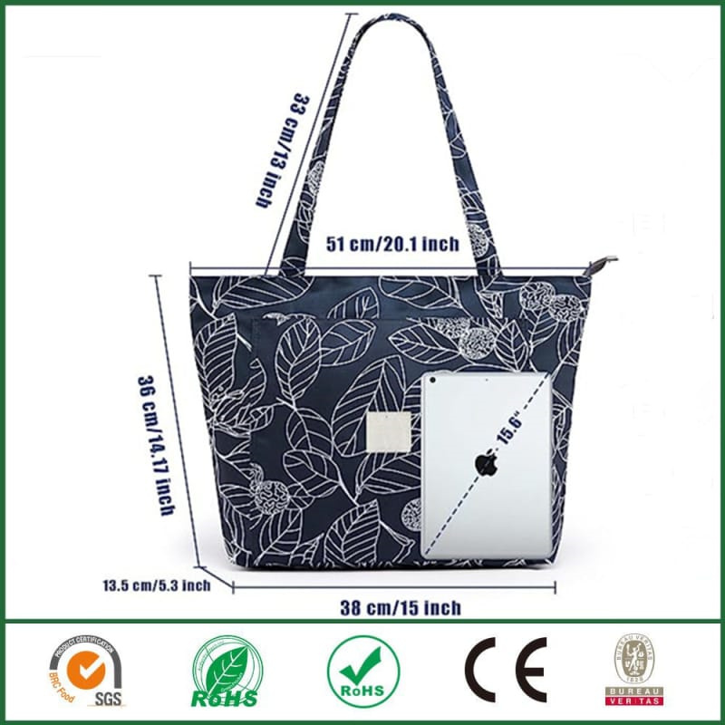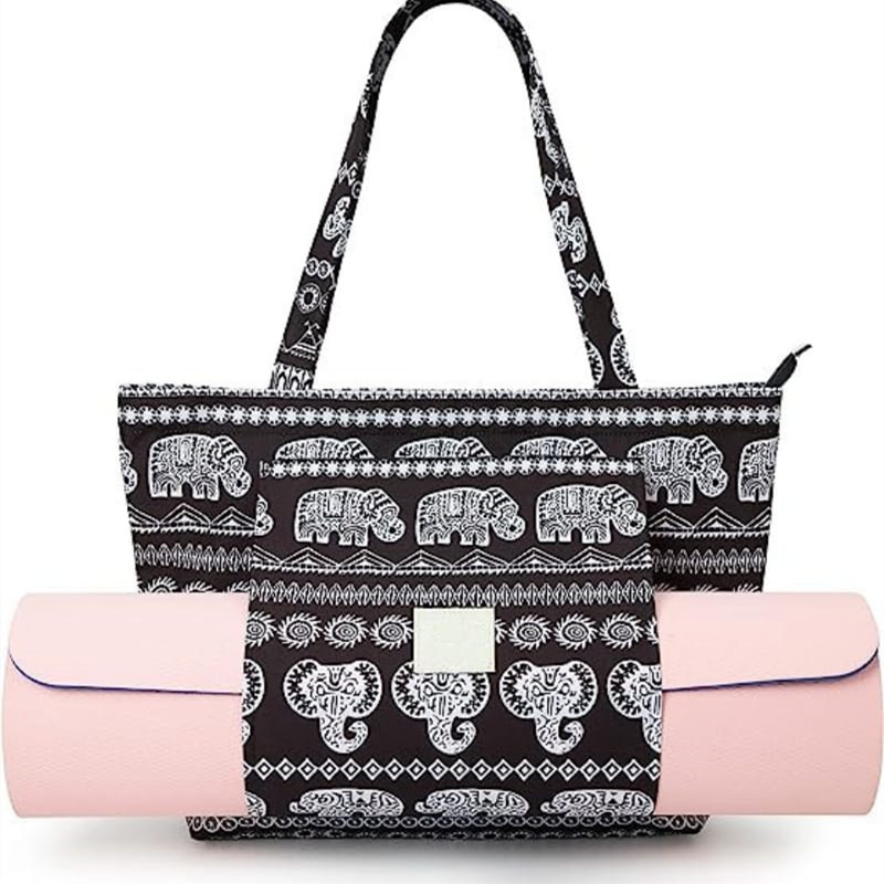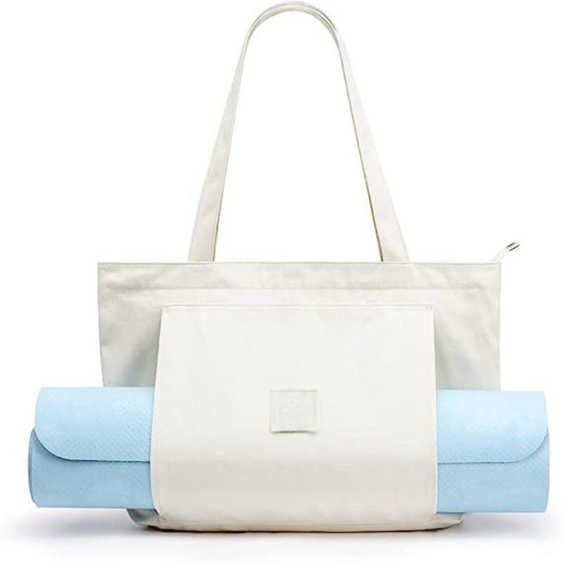 This Gym Tote is a highly convenient bag that features straps for holding yoga mats and spacious interior pockets with zipper closures for better organization of your belongings. It can easily accommodate a 13-inch laptop as well.